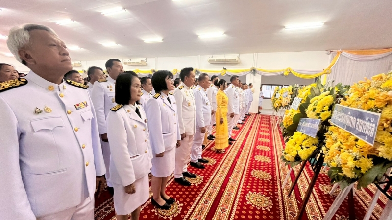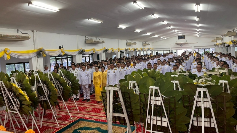 ผู้ร่วมพิธีจะยืนสงบนิ่ง และถวายบังคมพร้อมกัน